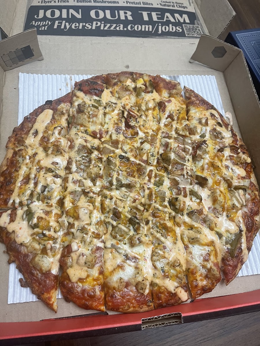 Walking into Flyers Pizza Galloway for the first time, I wasn’t expecting to become a regular, yet here I am three years later still ordering the same buffalo chicken pizza after late soccer practices. The shop sits right at 5634 Hall Rd, Galloway, OH 43119, United States, tucked into a busy stretch where families seem to orbit every evening around dinner time. It’s not flashy, but that’s the charm-local pizzeria energy with a menu that actually delivers on comfort food promises.